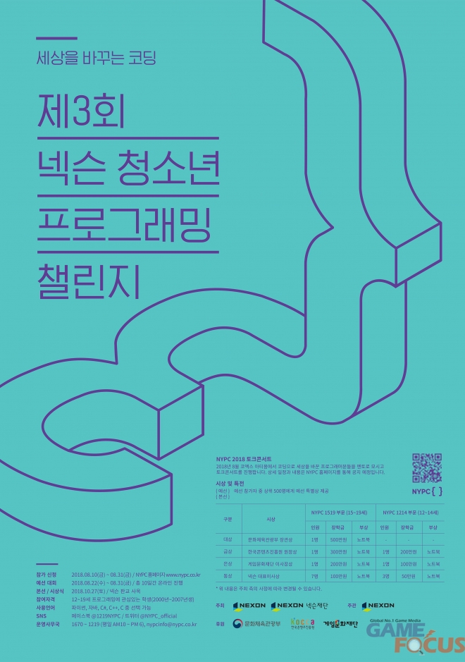 한편, 올해로 3회째를 맞는 NYPC는 코딩에 대한 청소년들의 관심 제고와 역량 증진을 목적으로 지난 2016년부터 진행된 청소년 코딩대회로, 대상 수상자에게는 문화체육관광부 장관상을 비롯해 장학금과 부상을 수여한다.