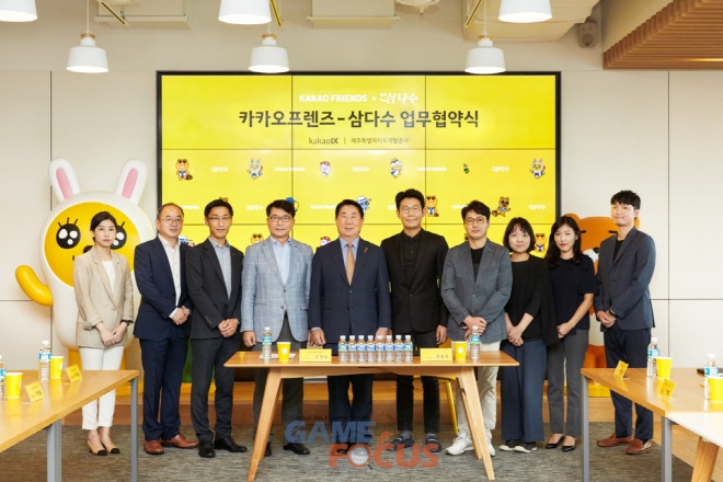 카카오IX가 제주특별자치도개발공사와 29일 오후 카카오IX 본사에서 업무협약을 맺고, 카카오프렌즈와 제주삼다수 간 콜라보레이션을 진행한다.