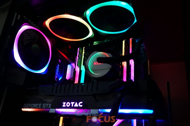 이번 PC 제작에 사용된 지스킬 트라이던트 Z RGB(TRIDENT Z RGB) 제품은 ASUS사의 AURA SYNC 소프트웨어, GIGABYTE RGB FUSION 소프트웨어 및 MSI Mystic Light Sync 소프트웨어 연동, RGB 조명 기술을 제공하는 메인보드 상에서 장착 후 메인보드의 LED 색상 및 LED 효과를 동기화 하여 맞춤 설정을 할 수 있으며, 통일된 효과를 통해서 최상의 튜닝 효과를 보여준다.