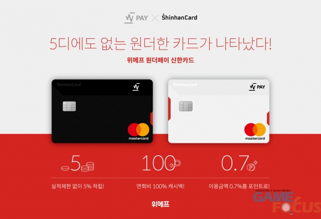 위메프와 신한카드가 위메프 간편결제 서비스인 '원더페이' 결제금액의 5%를 위메프 원더포인트로 적립하는 신용카드를 선보인다. 해당 카드는 원더페이 외 가맹점 이용금액에 대해서도 전월 실적조건과 적립한도 없이 이용금액의 0.7%를 포인트로 제공한다.