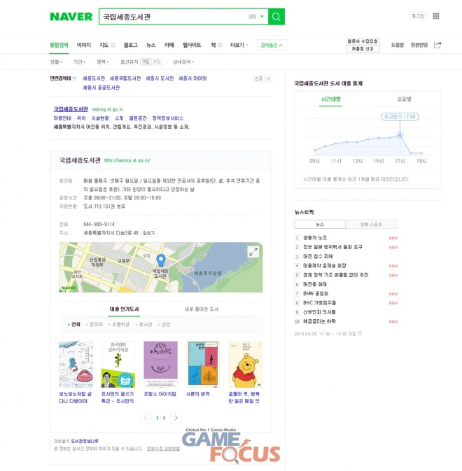 네이버가 공공도서관 빅데이터 플랫폼인 '도서관 정보나루'에서 제공하는 데이터를 기반으로 전국 도서관 관련 정보 검색을 지원한다.