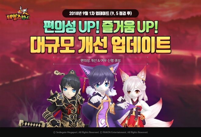 스마일게이트 메가포트(대표 장인아)가 서비스하는 인기 온라인 레이싱 게임 '테일즈런너'(개발사 라온엔터테인먼트)에 이용자들의 편의성을 개선하는 업데이트를 실시하고, 신규 코스튬 아이템을 추가했다.