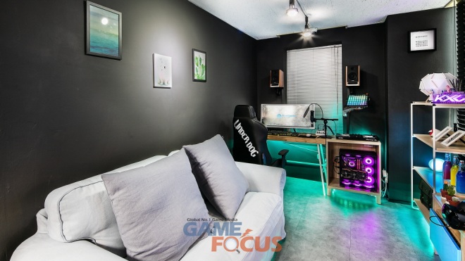 서울 KXG ZONE은 용산 시스기어 본사(서울 용산구 원효로 158 하나빌딩 12층)에 준비됐다. 게이밍 룸을 컨셉으로 34인치 21:9 비율의 모니터와 65인치 TV, 게이밍 체어 등 1인가구에 어울릴 법한 워너비 디자인이 눈에 띈다.