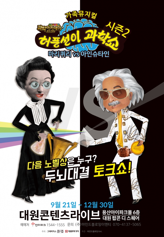 '허풍선이 과학쇼 시즌2'는 과학 체험 기반의 가족뮤지컬로 보드게임 형태의 대결구도 스토리 속에서 위인이자 노벨상 수상자인 퀴리부인과 아이슈타인을 만나볼 수 있다.