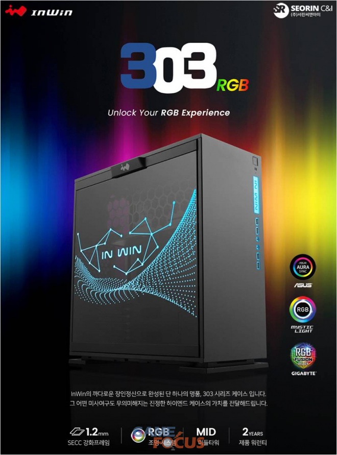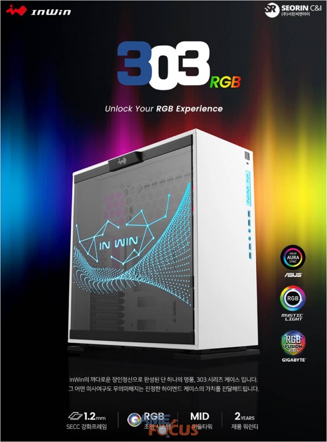(주)서린씨앤아이(대표:전덕규)는 전세계 PC 마니아 들에게 각광을 받고 있는 게이밍 케이스 및 미려하고 독보적인 디자인의 한정판 Signature 케이스 시리즈로 유명한 대만 상장 브랜드 인윈(In Win Development Inc)사의 RGB 조명 강화 유리 패널의 '303RGB' 케이스 시리즈를 출시했다.
