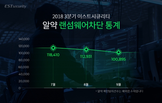 이스트시큐리티(대표 정상원)는 2018년 3분기 알약을 통해 총 33만 2236건의 랜섬웨어 공격이 차단되었다.