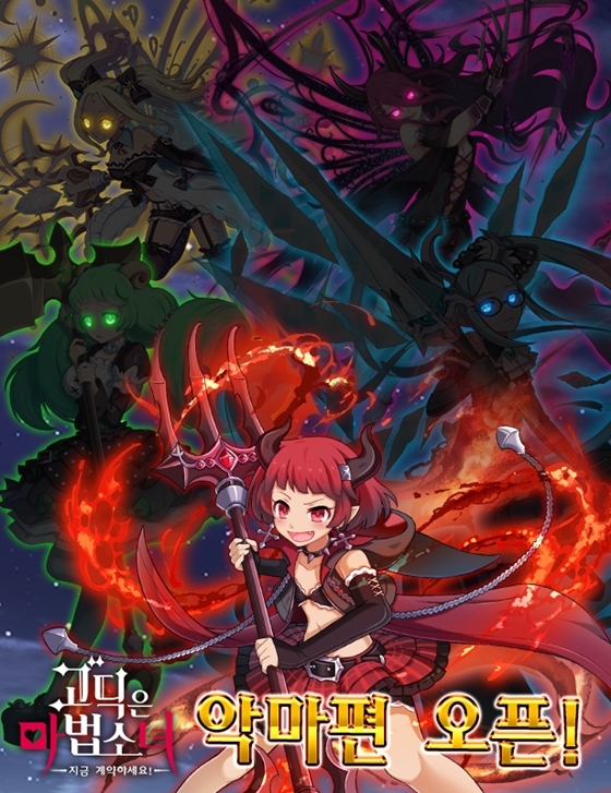 이번에 출시되는 '악마편' 시나리오는 1장과 2장으로, 악마편 신규 캐릭터는 업화와 용암을 조종하는 악마 '디기탈리스', 얼음을 다루는 악마 '릴리', 거대한 낫을 들고 진공을 조종하는 악마 '루치카', 상대에게 좋은 말만하여 마음의 틈에 들어가는 것이 특기인 '칼미아', 사람들을 유혹하고 마음의 어둠을 드러내게 하는 '다튜라' 이다.