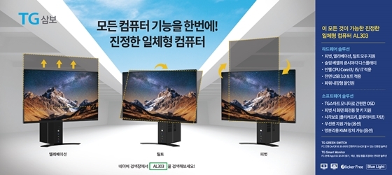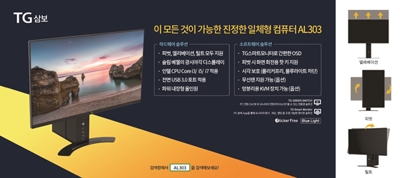 삼보컴퓨터의 신개념 일체형 컴퓨터 'AL303' 은 조달 나라장터 최초로 '피벗 엘리베이션, 틸트' 기능을 동시에 지원하는 일체형 컴퓨터로 업무 활용성을 강화했으며, 전면 USB 3.0 포트 지원과 자체 개발한 솔루션 등 사용자 중심의 기능을 강화하여 사용 편의성을 극대화 한 것이 특징이다.
