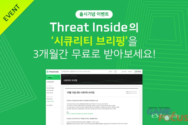 이스트시큐리티는 '쓰렛인사이드' 정식 출시를 기념해, 제품의 인텔리전스 리포트 서비스 중 하나인 '시큐리티 브리핑'을 3개월간 무료로 제공하는 이벤트를 진행한다.