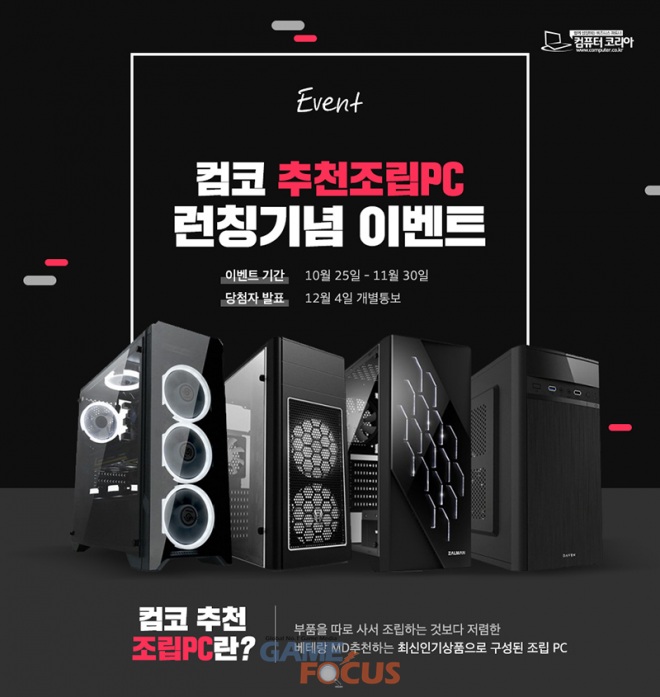 이러한 컴퓨터코리아가 이번에 새로이 시작하는 '컴코 추천 조립PC'는 담당 MD를 통해 검증된 성능과 안정성을 우선으로 선별된 주요 부품들로서 구성된 완제 PC 형태의 상품이다. 여기에 서린씨앤아이가 유통중인 게일의 프리스틴 메모리가 기본으로 장착되어 판매되는 것.