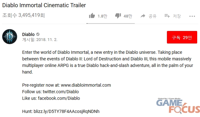 '디아블로 이모탈'은 블리자드와 넷이즈가 공동 개발한 모바일게임이다. '디아블로2: 파괴의 군주'와 '디아블로3' 사이 20여년의 공백을 메워줄 스토리, '야만용사'부터 '악마샤낭꾼' 등 6종의 캐릭터를 내세웠다. '블리즈컨'이 폐막한 후 사전 예약자 모집을 시작한 '디아블로 이모탈'의 출시 일정은 아직 공개되지 않았다.