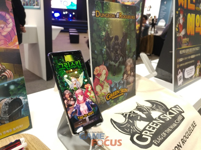 모바일게임 그린스킨은 미지의 던전을 탐험하는 로그라이크 장르의 게임으로, 이번 지스타에서 체험 버전을 플레이해볼 수 있다. 그린스킨은 동명의 조아라 대표 인기 웹소설로 소설 속 주인공이 고블린으로 환생하여 적들을 물리치며 오크, 마족으로 진화하는 모험기를 그리고 있다. 모바일게임 그린스킨은 원작의 모험기 컨셉을 살려 다양한 던전을 탐험하며 아이템을 획득하고, 탐험 실패 시 모든 것을 잃게 되는 ‘로그라이크’ 장르로 재탄생하였다. 일반적인 RPG 게임에 지친 유저들에게 긴장과 스릴을 선사하는 새로운 게임으로 다가갈 수 있을 것으로 보인다. 현재 한창 개발 중에 있으며 출시 일정은 내년 초로 알려졌다.