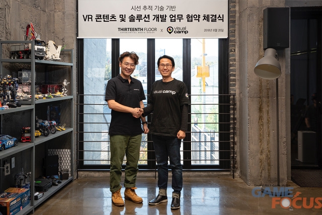 서틴스플로어(대표 박정우)가 비주얼캠프와 시선 추적 기술을 적용한 VR 및 모바일 콘텐츠 개발에 협력하기 위해 업무 협약을 체결했다.