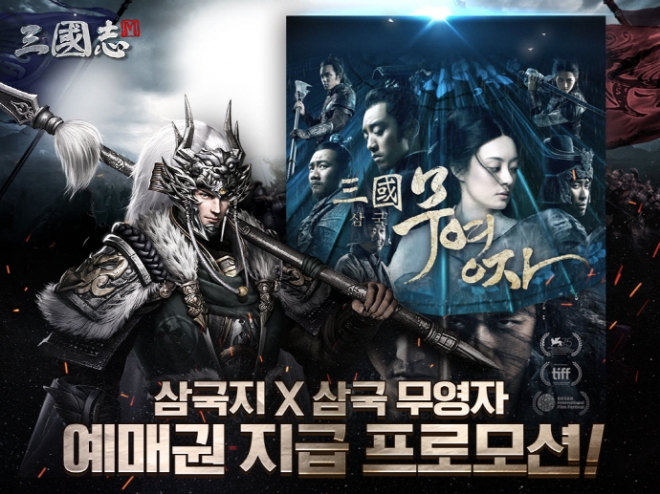 ‘삼국지M’은 공식카페에서 감독, 내용, 주요 스토리 등 ‘삼국-무영자’ 관련 퀴즈를 맞힌 이용자 중 50명을 추첨하여 ‘삼국지-무영자’ 영화 예매권과 함께 100만 자원 인게임 쿠폰을 제공한다. 여기에 더해 3만 원 상당의 인게임 쿠폰을 추가로 지급한다.
