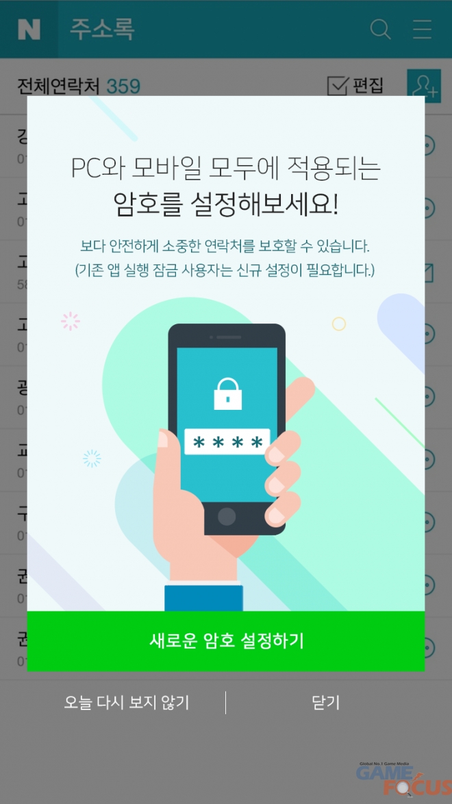 특히, 이번 네이버주소록 암호잠금 기능은 로그인시 바로 연락처 확인이 가능한 PC 및 모바일 웹에서는 서비스 접근시점마다 암호입력을 요구하며, 모바일 앱에서는 연락처를 동기화하거나 단말이 변경될 경우 암호입력을 하도록 추가되어 더욱 강력한 보안성을 제공하게 된다.