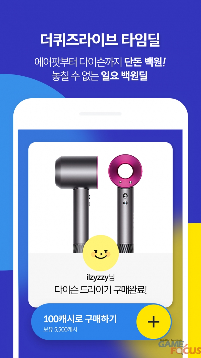 더 퀴즈 라이브는 지난 2일 열린 첫 '더퀴라 일요타임딜' 이벤트에서 정품 에어팟 10대를 100캐시에 판매했고, 다가오는 9일에는 외식 상품권 5만원권 50매를 타임딜 경품으로 건다. 그리고 이후 이벤트에서도 다이슨 슈퍼소닉 헤어드라이어 등 더욱 파격적인 제품을 제공할 계획이다. 퀴즈쇼 진행은 최근 <황후의 품격>, <강남스캔들> 등 드라마에서 활약 중인 배우 신고은이 맡는다.