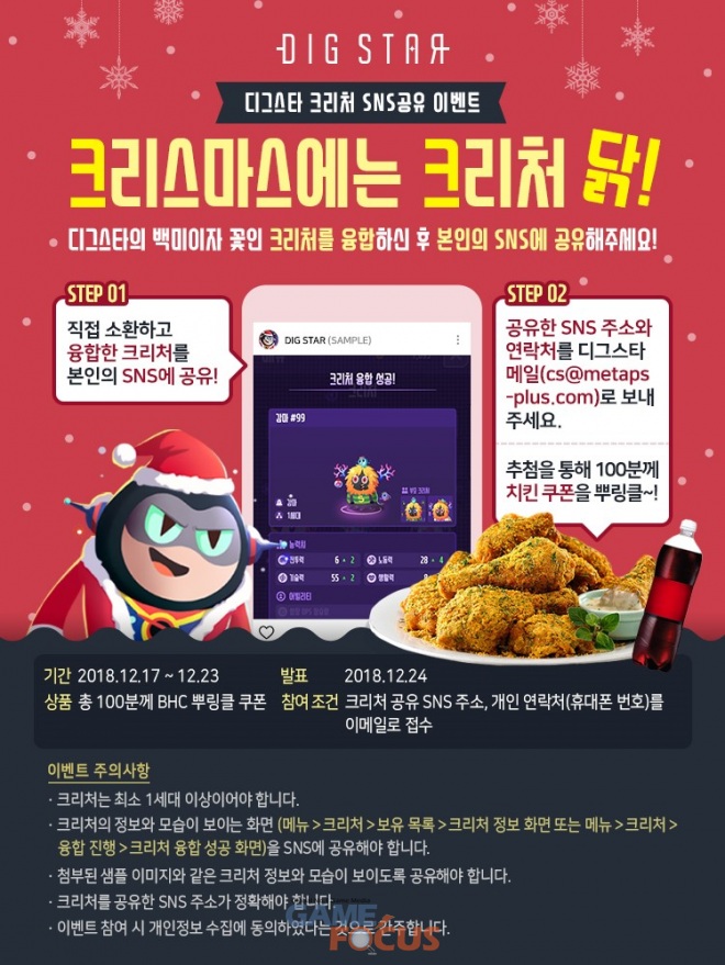 먼저, 크리스마스 및 연말을 맞아 '디그스타'는 '디그스타 크리처 SNS 공유 이벤트'를 오는 23일(일)까지 진행한다.
