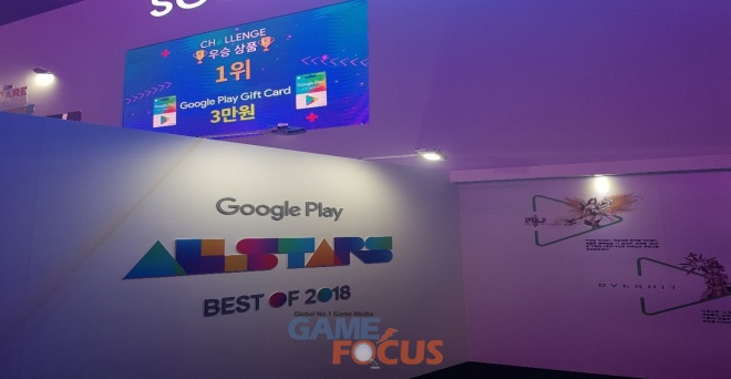 구글플레이 부스에서 진행된 올스타 슈퍼매치에서는 프로게이머 홍진호와 국내 최고 게임 크리에이터 풍월량이 주장이 되어 다양한 게임 플레이로 진행되는 이색 경기를 펼쳤다.