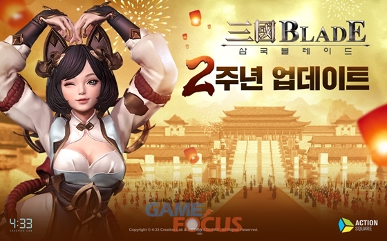 네시삼십삼분(대표 한성진, 이하 4:33)이 모바일 수집형 RPG '삼국블레이드'(개발사 액션스퀘어)의 서비스 2주년을 기념하는 인포그래픽을 공개하고 업데이트를 진행했다.