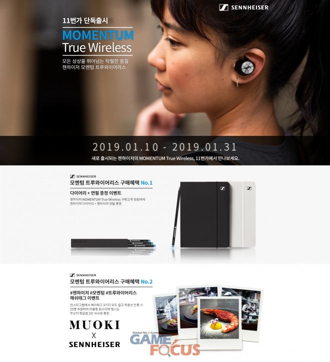 이번 이벤트는 1월10일부터 31일까지 진행되며, 11번가를 통해 젠하이저의 모멘텀 트루 와이어리스를 구매하는 고객에게 젠하이저의 고급 다이어리와 연필 세트를 증정한다.