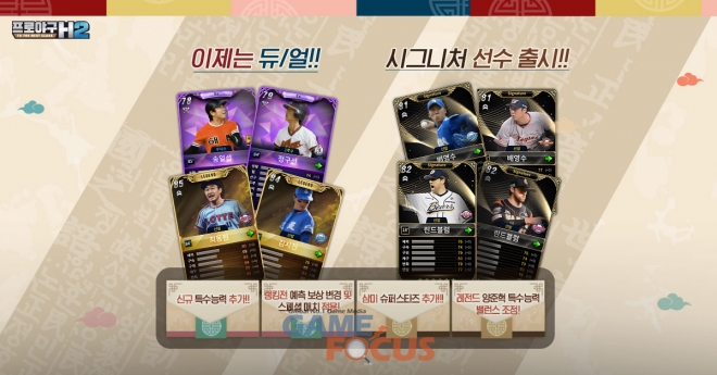 엔씨(NC)는 이번 업데이트를 통해 최동원('84, 롯데)과 김시진('85, 삼성)을 신규 레전드 선수 카드로 추가했다. 이와 함께 1984~1985년도에 활약한 422명(EX 등급 4명, 포텐셜 등급 24명 등 특수카드 포함)의 선수 카드도 공개하고 신규 구단으로 82년도에 창단한 '삼미 슈퍼스타즈'를 업데이트했다.
