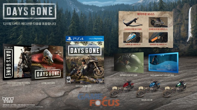 'DAYS GONE’ 스탠다드 에디션(디스크 버전) 64,800원, 컬렉터스 에디션(디스크 버전) 159,800원, 디지털 스탠다드 에디션(다운로드 버전) 64,800원, 디지털 디럭스 에디션(다운로드 버전) 75,800원에 각각 발매된다.