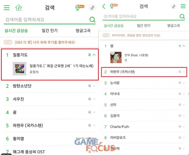 펄어비스는 지난 24일 하현우가 부른 '질풍가도' 음원을 공개했다. 이에 원곡 '질풍가도'가 역주행하며 음원사이트 멜론에서 실시간 검색 순위 1위를 차지했고 음원사이트에 발매된 하현우 콜라보 음원 역시 2위를 차지했다.