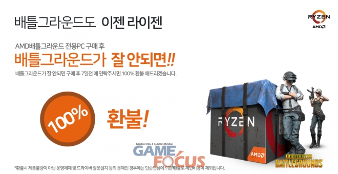 또한 AMD 배틀그라운드 전용PC는 구매 후 배틀그라운드가 잘 안되면 100% 환불해 주는 이벤트도 준비했다.