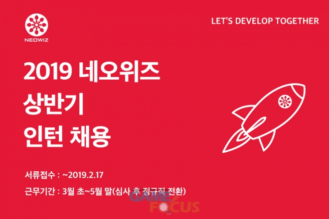 네오위즈(대표 문지수)가 오는 17일까지 2019년 상반기 인턴사원을 공개 모집한다.