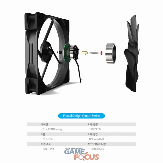 벤츄리 팬 HF 시리즈는 True FDB 베어링이 채용되어 뛰어난 쿨링 효과를 제공하며, 안정적인 기류를 형성시켜 정숙한 동작 환경을 제공한다. 또한, 축 방향의 장력을 감소시키는 카운터 풀 자석이 장착되어 베어링의 마모를 최소화해 150,000 MTBF (hour) 작동보증시간을 제공, 오랜 수명 역시 갖추고 있다.