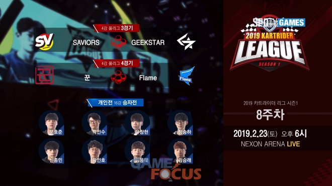 8주차 4강 풀리그 3경기에는 ‘SAVIORS' vs ‘GEEKSTAR', 4경기에는 ‘꾼'과 ‘Flame'의 경기가 준비되어 있다. 현재 공동 1위의 ‘SAVIORS'와 ‘Flame', 공동 3위를 기록하고 있는 ‘GEEKSTAR', ‘꾼'까지, 모두 단독 순위를 쟁취하기 위한 승점이 필요한 상황이다. 동일 승점일 경우 세트, 트랙 포인트를 비교해 플레이오프에 진출하기 때문에 네 팀의 한 트랙도 물러설 수 없는 승부가 펼쳐질 것으로 예상된다. ‘SAVIORS'와 ‘Flame'은 1승 획득 시 포스트 시즌 진출 확정으로, 과연 첫 포스트 시즌 진출자가 어느 팀일지에 대한 궁금증이 모아지고 있다.