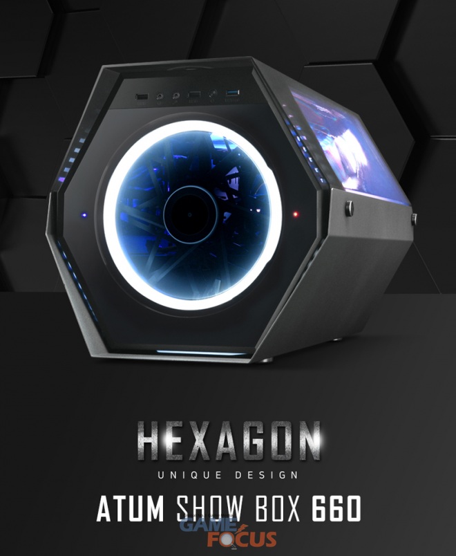 쇼박스 660은 기존 사각형의 일반적인 케이스 디자인에서 벗어나 섀시 전체가 육각형 형태를 하고 있는 제품으로 마이크로 ATX와 일반 ATX 규격의 파워서플라이가 장착되는 미니 타워 규격의 제품이다.