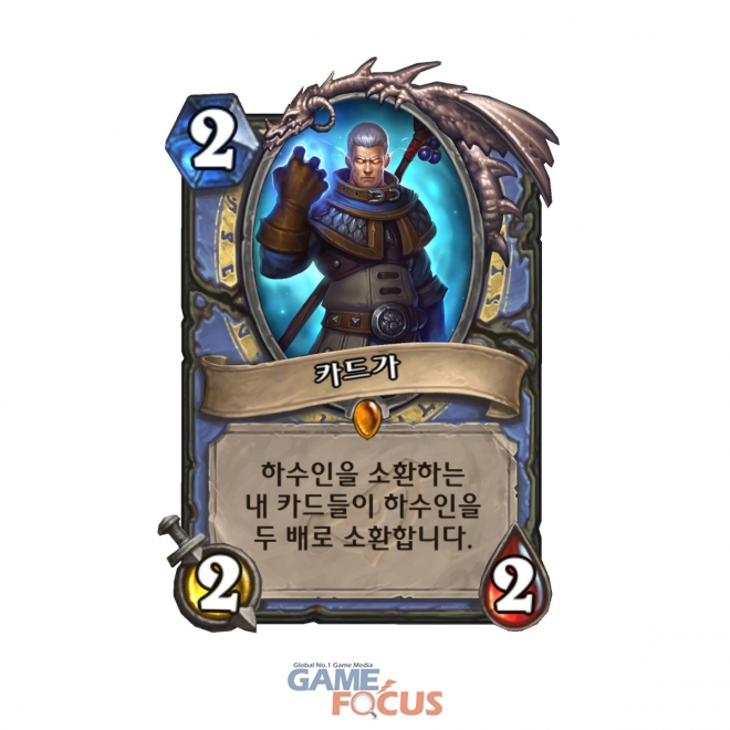 워크래프트 역사에서 가장 강력한 마법사 가운데 하나로 알려진 카드가는, 이제 대악당 라팜이 규합한 악당의 무리에 대항하는 조직적인 작전 준비에 돌입한다. 비용 2의 전설 하수인으로서 카드가는 하수인들을 소환하는 카드들이 두 배의 하수인을 소환하도록 강화한다.