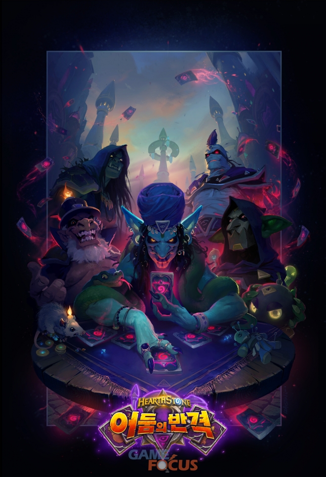 블리자드 엔터테인먼트(Blizzard Entertainment, Inc.)가 자사의 첫 스마트폰 게임이자 인기 디지털 카드 게임인 하스스톤(Hearthstone)의 신규 확장팩 '어둠의 반격(Rise of Shadows)'에 등장할 카드 중 세 장의 전설 카드를 포함한 열 두 장의 카드를 금일(26일) 새벽 개발자 영상을 통해 공개했다.