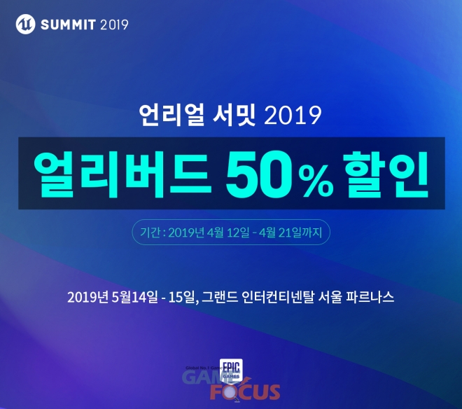 한편, 에픽게임즈는 언리얼 서밋 홈페이지를 통해 '언리얼 서밋 2019' 티켓 판매를 시작했다. 12일부터 21일까지는 '얼리버드' 티켓이 판매되며, 22일부터 26일까지는 '사전 등록' 티켓을 구매할 수 있다. '얼리버드' 티켓은 정가 6만 원(학생 4만 원)인 1일권과 12만 원(학생 8만 원)인 양일권 티켓을 50% 할인된 3만 원(학생 2만 원)과 6만 원(학생 4만 원)에 구매할 수 있으며, '사전 등록' 티켓은 30% 할인된 4만 2천원(학생 2만 8천원), 8만 4천원(학생 5만 6천원)에 판매된다. 4월 27일부터 5월 12일까지는 정상 가격에 티켓이 판매된다. 언리얼 서밋 당일 현장 등록 가격은 1일권 7만 원(학생 5만 원), 양일권은 14만 원(학생 10만 원)이지만 전 좌석 매진 시 현장 등록은 불가능하다.