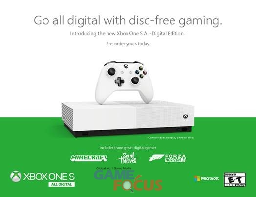 'Xbox One S 올 디지털 에디션'은 디스크 없이 디지털 다운로드를 통해 게임을 플레이할 수 있는 게임 콘솔이며 인기 타이틀인 '마인크래프트', '포르자 호라이즌 3', '씨 오브 시브즈'가 내장되어 있다.