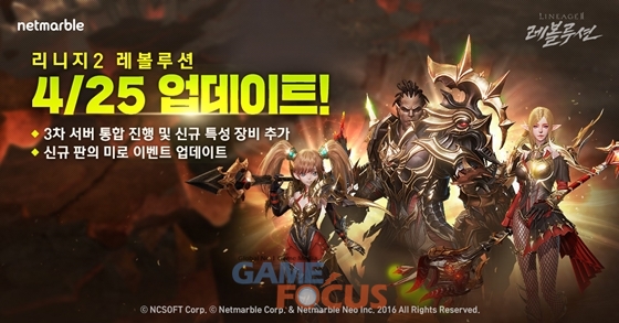 넷마블(대표 권영식)이 모바일 MMORPG(다중접속역할수행게임) '리니지2 레볼루션(개발사 넷마블네오)'에 3차 서버 통합과 신규 아이템을 추가하는 업데이트를 실시했다.