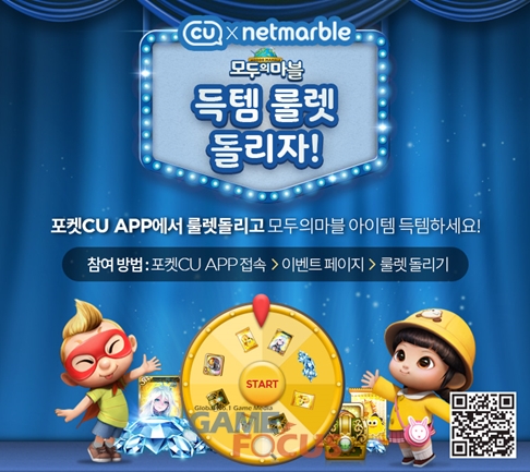 이벤트는 '포켓CU' 내 넷마블 제휴 이벤트 페이지에서 룰렛을 돌려 아이템을 획득하는 방식으로 매일 1회 응모, 계정 당 최대 3회 입력 가능한 방식으로 누구나 참여 가능하다.