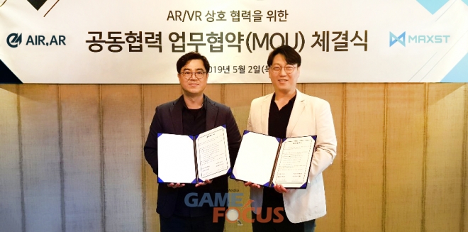 증강현실 엔진 원천기술 보유기업 맥스트와(대표 박재완) 증강현실 컨텐츠 제작 전문기업 에어에이알(대표 오성훈)이 5G 시대 선두에 나서기 위해 전략적 협의에 나섰다. 양사는 콘텐츠 공동 기획 및 기술 협의를 통해 AR기술 응용 사업에 박차를 가할 계획이다.