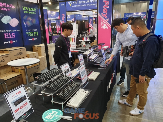 국내 소비자의 취향을 반영하여개발된 MANIC 오리지널 스위치를 적용한 기계식 키보드 '마이크로닉스 MANIC X60' 시리즈는 뛰어난 키감과 화려한 RGB LED의멋진 디자인을 선보이며, 물세척이 가능할 정도로 완전방수 성능을 갖춘'마이크로닉스 MANIC X40'과 '마이크로닉스 MANIC X48' 등, 인기 게이밍 키보드 제품군이 선보이며 7.1채널 가상 서라운드와 진동 효과로 생동감을 전하는 '마이크로닉스 MANIC HS-510' 헤드셋, '마이크로닉스 MANIC G40' 게이밍 마우스 등, 수 많은 인기 게이밍기어 제품들을현장에서 직접 보고 체험할 수 있다.