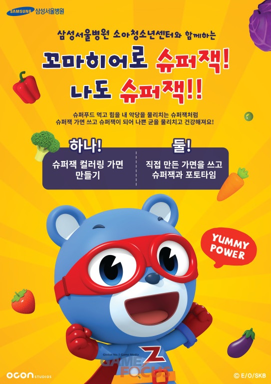 슈퍼히어로와 건강한 음식의 조화로 탄생한 오콘의 신작 애니메이션 '꼬마히어로 슈퍼잭'이 어린이날을 맞아 삼성서울병원 소아청소년센터에 방문해 환아들의 쾌유를 바라는 응원과 함께 특별한 추억을 선사했다.