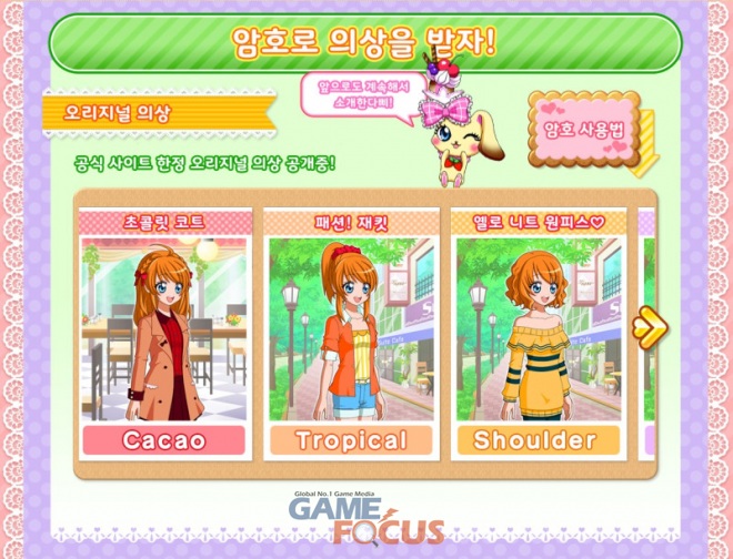 오늘 출시를 맞이하여, 공식 사이트에서 그동안 비공개 상태였던 오리지널 의상에 대한 정보를 공개하였다. 게임 내 메인 화면의 암호 메뉴에서 공식 사이트에 있는 암호를 입력하면, 주인공 '라임’의 특별한 의상을 받을 수 있다.