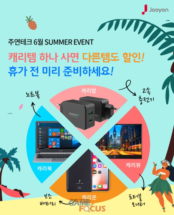 '캐리 시리즈' 여름 구매 할인 이벤트는 주연테크 공식 쇼핑몰 주연샵과 네이버스마트스토어 그리고 오픈마켓에서 확인 가능하다.