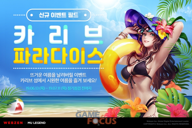 웹젠은 오늘(6월 13일)부터 '뮤 레전드'에 신규 이벤트 필드 '카리브 파라다이스'를 추가하고, 7월 11일 점검 전까지 다양한 보상을 획득할 수 있는 이벤트를 진행한다.