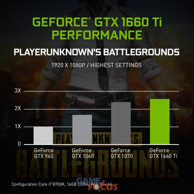 지포스 GTX 960에서 지포스 GTX 1660 Ti로 업그레이드할 시, 게임 퍼포먼스가 약 2배 이상 향상되는 효과를 경험할 수 있다. 지포스 GTX 1660 Ti를 사용하면 하이(High) 설정으로 1080p에서 120FPS로 게임을 즐길 수 있다.