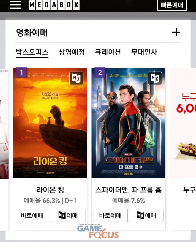 디즈니가 선사하는 스펙터클 대작 '라이온 킹'이 바로 내일(17일) 대한민국 개봉을 앞둔 가운데, 영진위 통합전산망에서는 이미 사전 예매 예매량만 20만 장을 돌파하고 예매 점유율 또한 약 60%를 기록했다. 뿐만 아니라 CGV, 롯데시네마, 메가박스 등 대한민국 대표 주요 극장 예매 사이트에서 일제히 평균 55%이상의 예매율을 기록하며 진정한 올 여름 흥행킹 탄생을 예고했다. 전 예매사이트에서 예매킹으로 우뚝 선 영화 '라이온 킹'은 새로운 흥행 왕좌 교체가 가능할지 주목된다.
