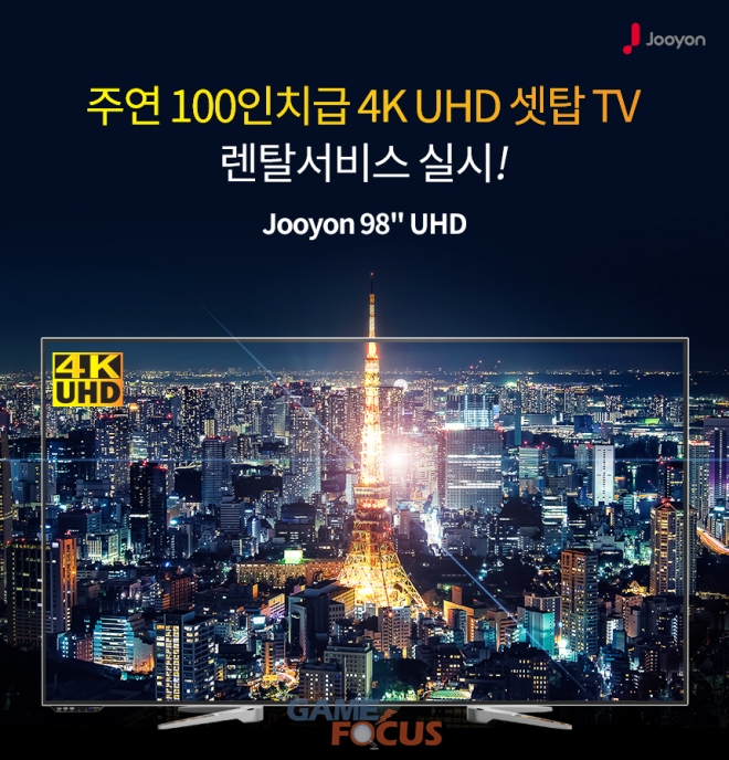 주연테크(대표 김희라)에서 설립한 자회사 주연전자(대표 곽광욱)가 98인치 4K UHD 셋탑 TV JYE98AUHD의 렌탈 서비스를 실시한다.