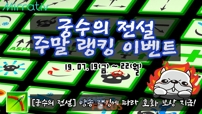 미러티브에서 개최하는 이번 '궁수의 전설' 방송 랭킹 이벤트는 지난주 주말에 열린 '궁수의 전설' 방송 이벤트에 이어 두 번째로 개최되는 이벤트다.