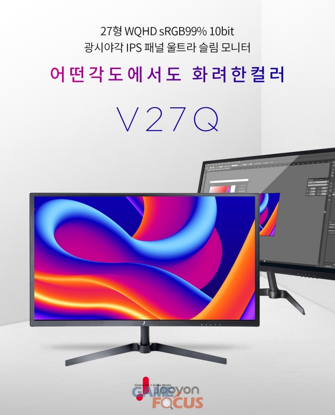 (주)주연테크(대표 김희라)는 선명한 화질을 자랑하는 울트라슬림베젤 27형 WQHD sRGB99% 모니터 V27Q를 출시했다고 23일 밝혔다.