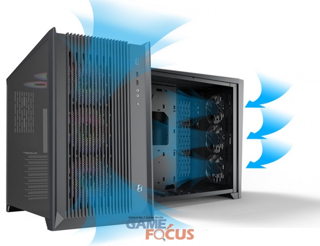 또한, PC-O11 에어는 전면 패널에 USB3.1 TYPE-C 포트를 비롯, USB3.0 2개, HD AUDIO, 전원 버튼등을 구성하였으며, 강화유리가 아닌 반대편 측면 패널에는 촘촘하게 뚫려있는 에어홀이 마련되어 전면과 상단의 벤트 홀과 함께 효율적인 시스템 냉각 환경을 조성한다.